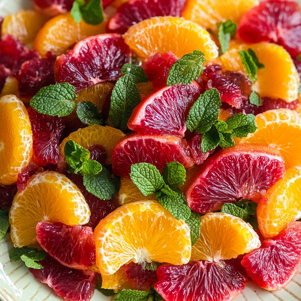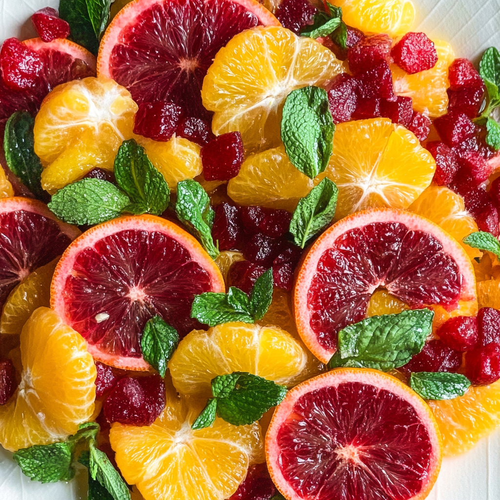 Once your citrus is beautifully arranged on the plate and dressed with that luscious mixture, it’s time for garnishing! Sprinkle pomegranate arils over the top for added color and texture, then finish with fresh mint leaves. These little touches make your Citrus Salad not only tasty but also visually stunning.