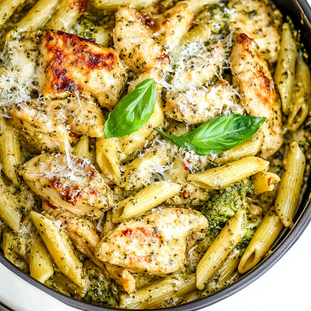 Creamy Pesto Chicken and Broccoli Pasta Bake