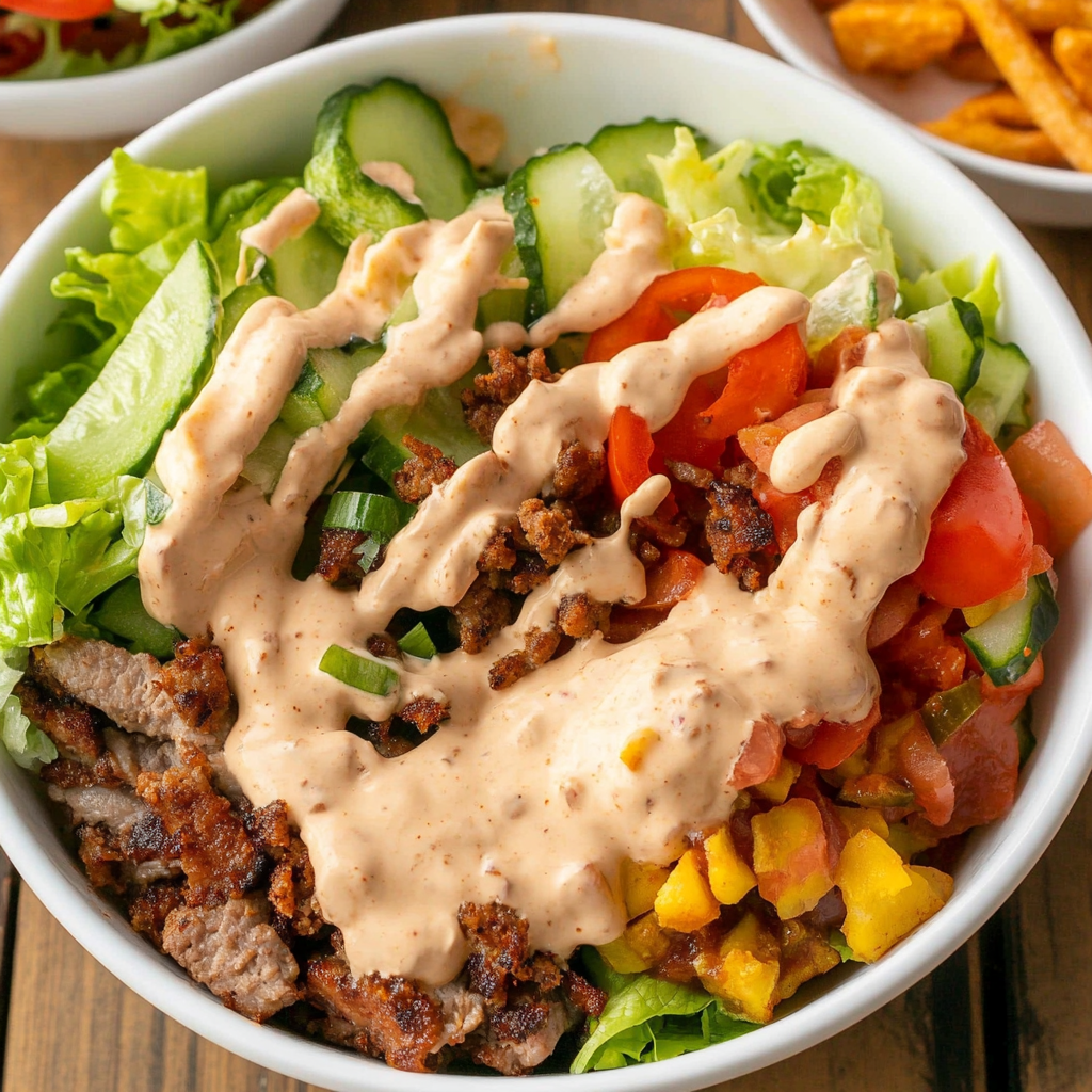 And there you have it—your Fully Loaded Burger Bowl with Special Sauce. Enjoy every delicious bite!