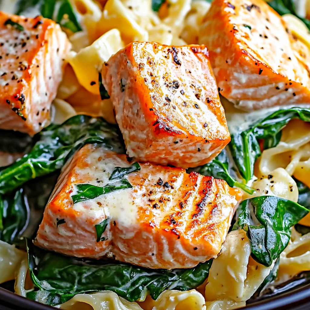 The combination of fresh salmon and spinach provides essential nutrients while being flavorful. The creamy sauce adds richness without overpowering the healthy ingredients.