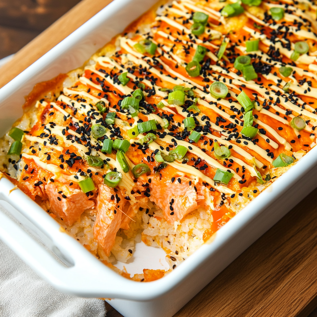 Imagine layers of seasoned sushi rice topped with a spicy salmon mixture and creamy cheese, all baked until bubbly and golden. It’s not just tasty; it’s also an adventure for your taste buds! Whether you’re hosting friends or simply treating yourself to something special, this recipe is a guaranteed crowd-pleaser.
