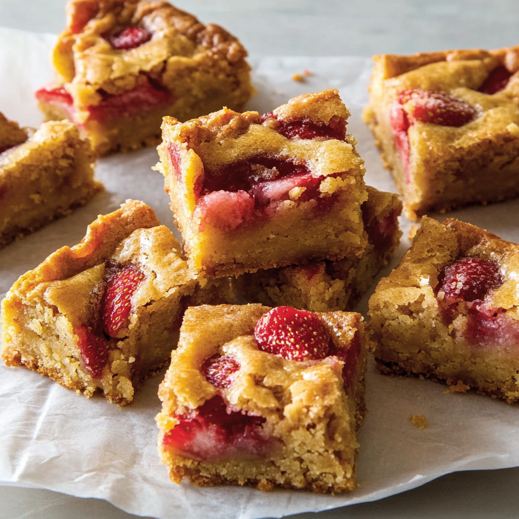 The combination of strawberries and lemon gives these blondies a refreshing flavor that’s sure to brighten your day! Their soft texture paired with a sweet glaze creates a delightful treat that’s perfect for any occasion.